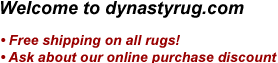 Dynasty Rugs Inc. invites you to the world of handcrafted Oriental and European rugs, a world of meticulous technique and craftsmanship to achieve timeless elegance. A handcrafted Oriental rug is a utilitarian work of art, and a source of lifelong enjoyment. Oriental rugs increase in value with age and proper care and will become your heirloom treasure.